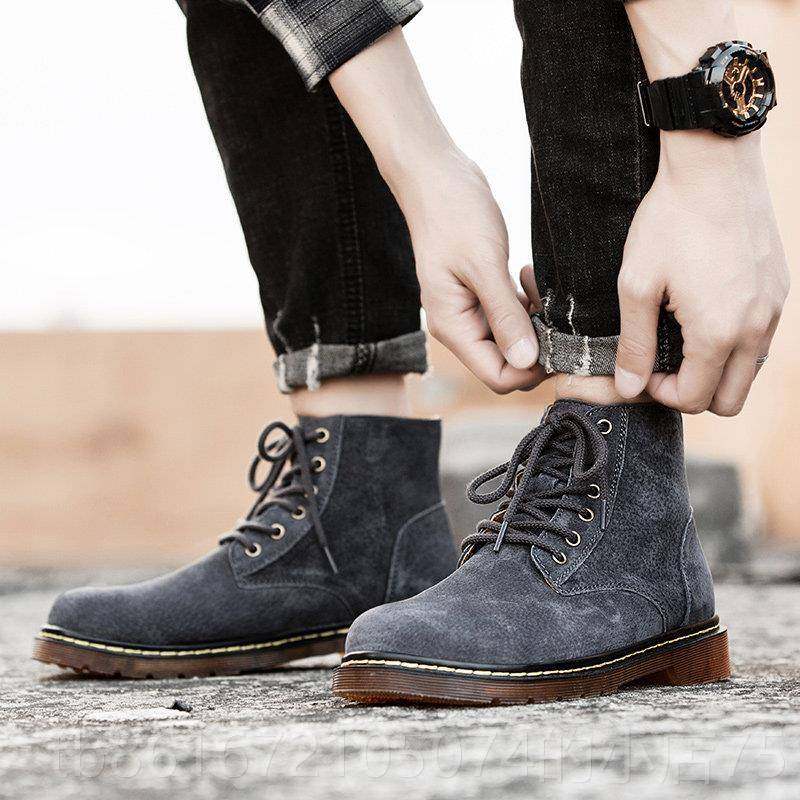高档马丁皮靴男冬季加棉鞋英伦风绒中高帮复情侣短靴男真工古装沙