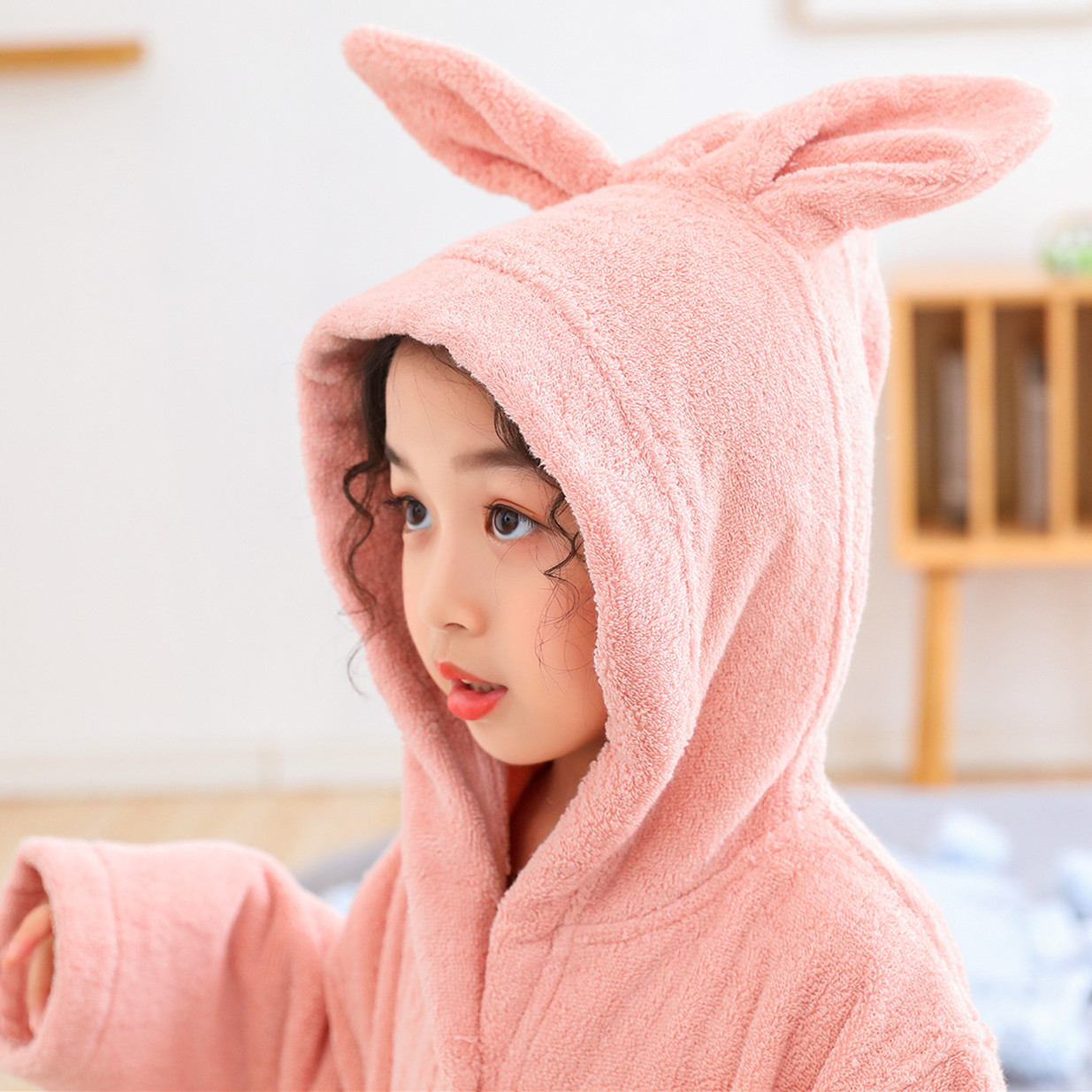 纯棉儿童浴袍毛巾料带帽兔耳朵游泳吸水男女童袍全棉睡袍包邮特卖