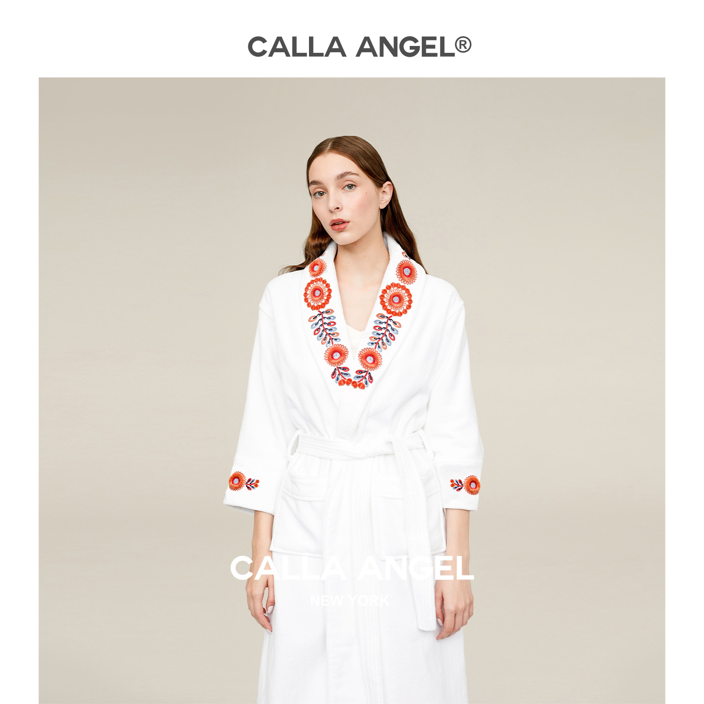 CallaAngel立体刺绣纯棉浴袍毛巾料长绒棉柔软吸水加厚款浴衣女