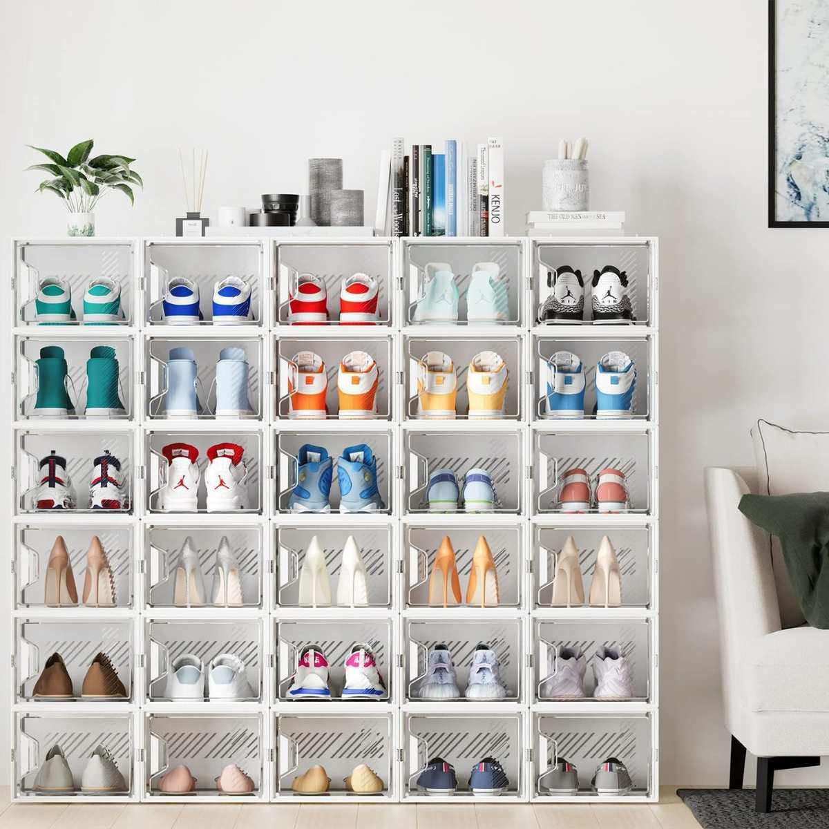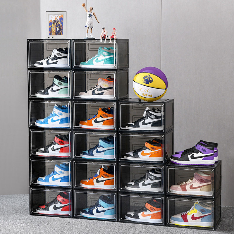 彩色亚克力鞋盒塑料透明aj球鞋收纳盒加厚宿舍鞋子收纳组合鞋柜墙