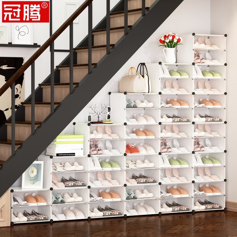 楼梯鞋架阶梯式简易门口多层防尘梯形斜角楼梯下的置物架组合鞋柜