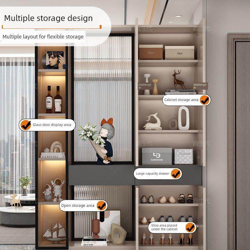 入门客厅玄关柜隔断玻璃一体储物柜小户型客厅屏风可定制组合鞋柜
