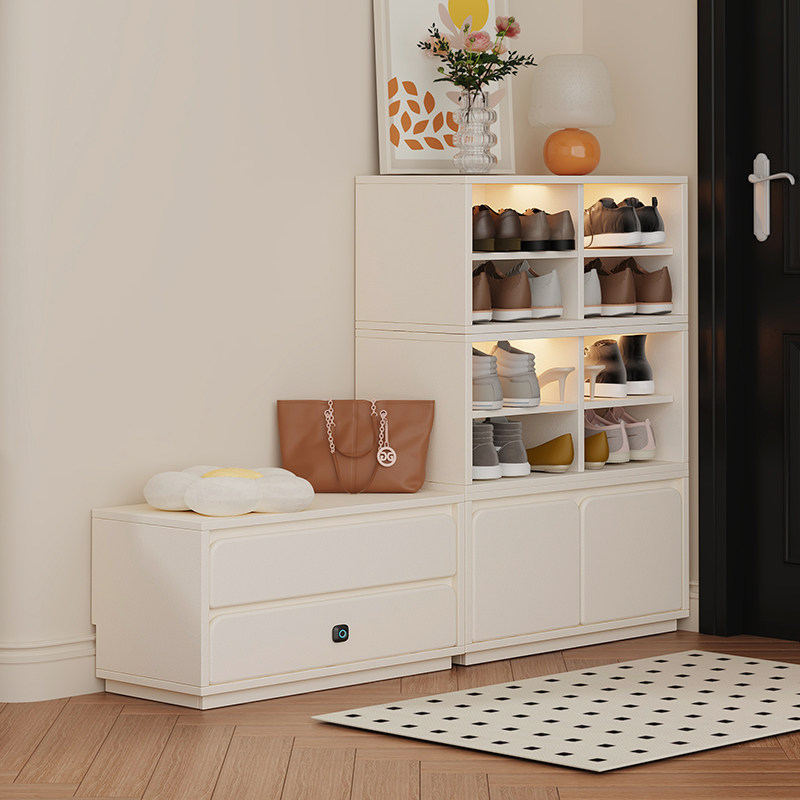 奶油风入户自由组合鞋柜门口带锁高低组合玄关柜新款2024爆款法式