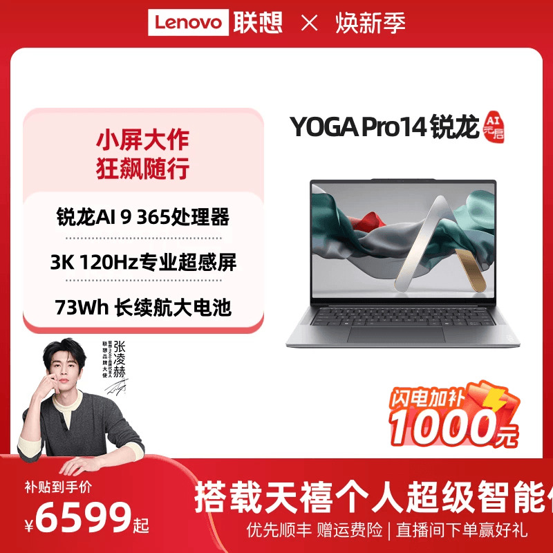 【*闪电加补1000元】联想YOGA Pro14 AI元启锐龙AI 9 14.5英寸3K屏轻薄本笔记本电脑高端商务办公笔记本电脑