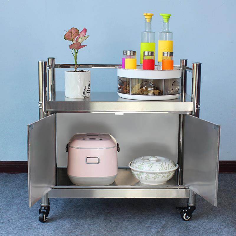 66高不锈钢微波炉置物架带柜门二层家用储物架收纳货架落地餐边柜