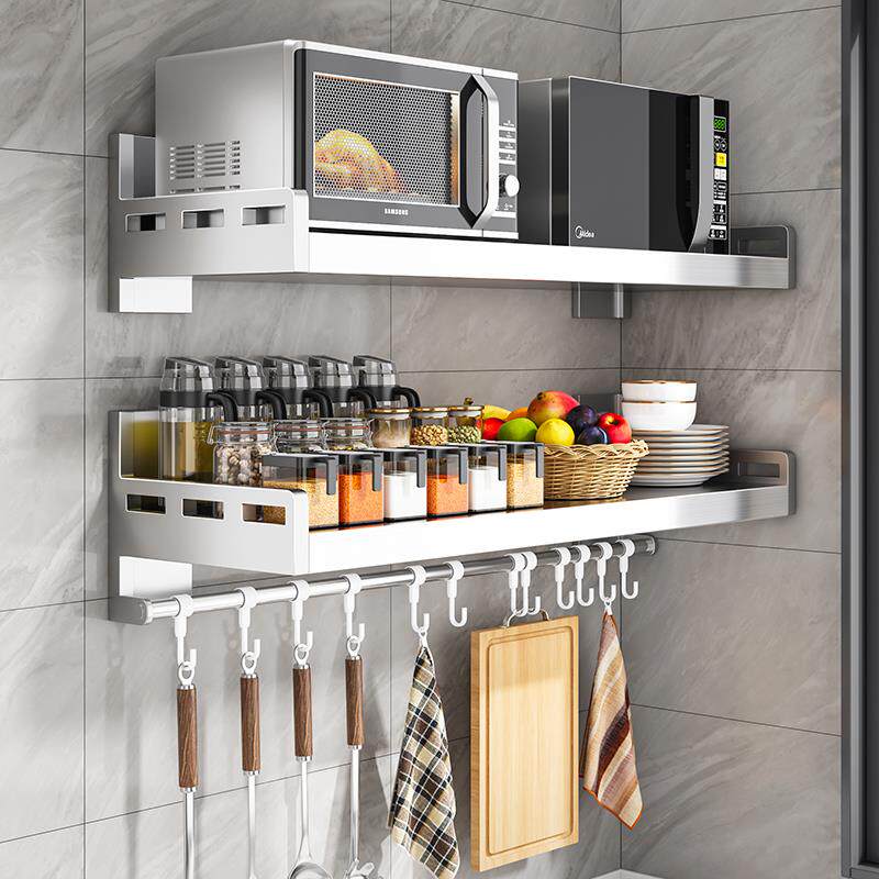 不锈钢厨房微波炉置物架壁挂式多功能免打孔家用调味料收纳壁挂架