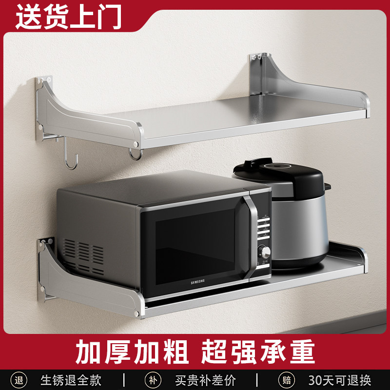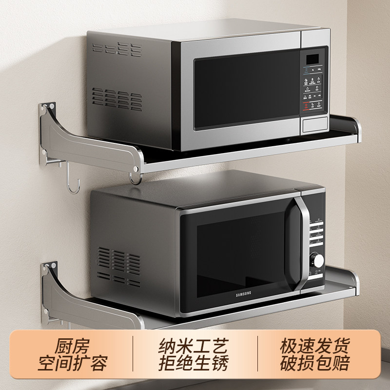 不锈钢微波炉置物架免打s孔挂墙上烤箱支架壁挂式厨房收纳架挂架