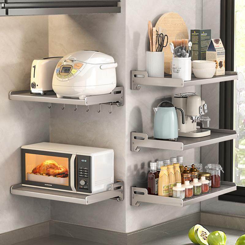 厨房不锈钢微波炉置物架壁挂式多功能免打孔上墙家用调味料收纳架