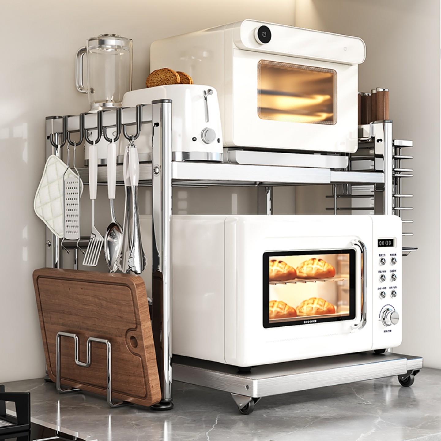 德国厨房不锈钢微波炉置物架多功能支架台面烤箱电饭煲一体收纳架
