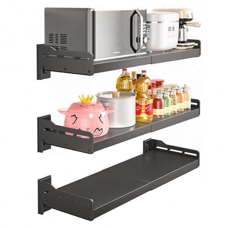 甄选可伸缩挂墙上不锈钢微波炉置物架 免打孔壁挂式烤箱厨房收纳