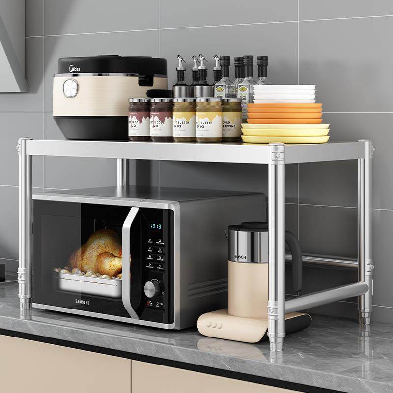 厨房用品不锈钢微波炉置物架台面加高一层升高多功能烤箱收纳层架