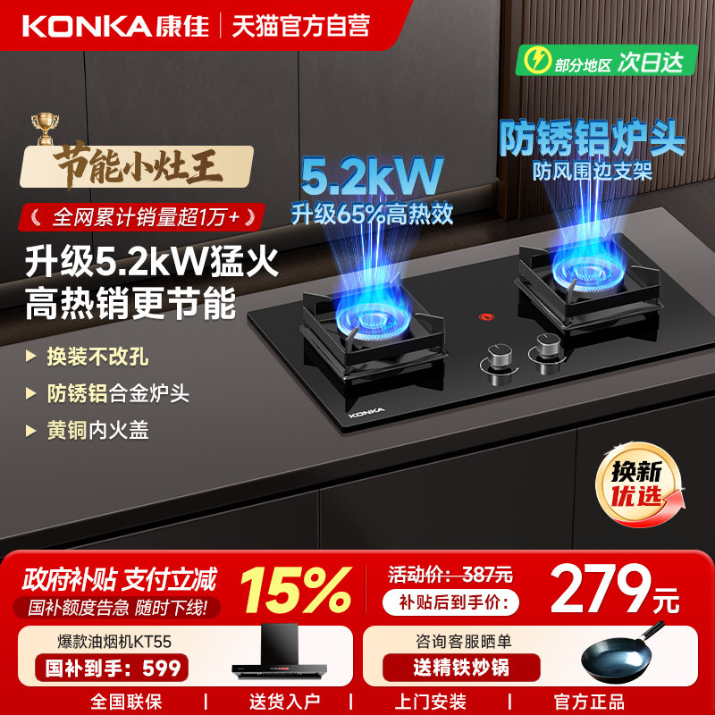 康佳燃气灶家用煤气灶双灶厨房台嵌钢化玻璃灶具以旧换新补贴01