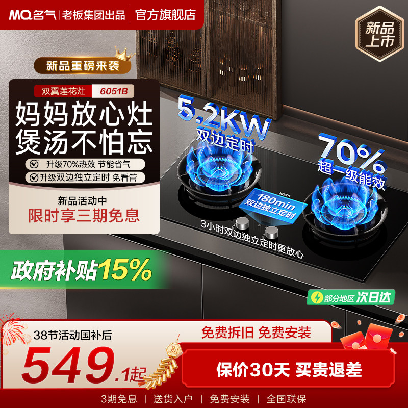[新品]名气天然气燃气灶定时煤气灶双灶家用液化气老板出品6051B