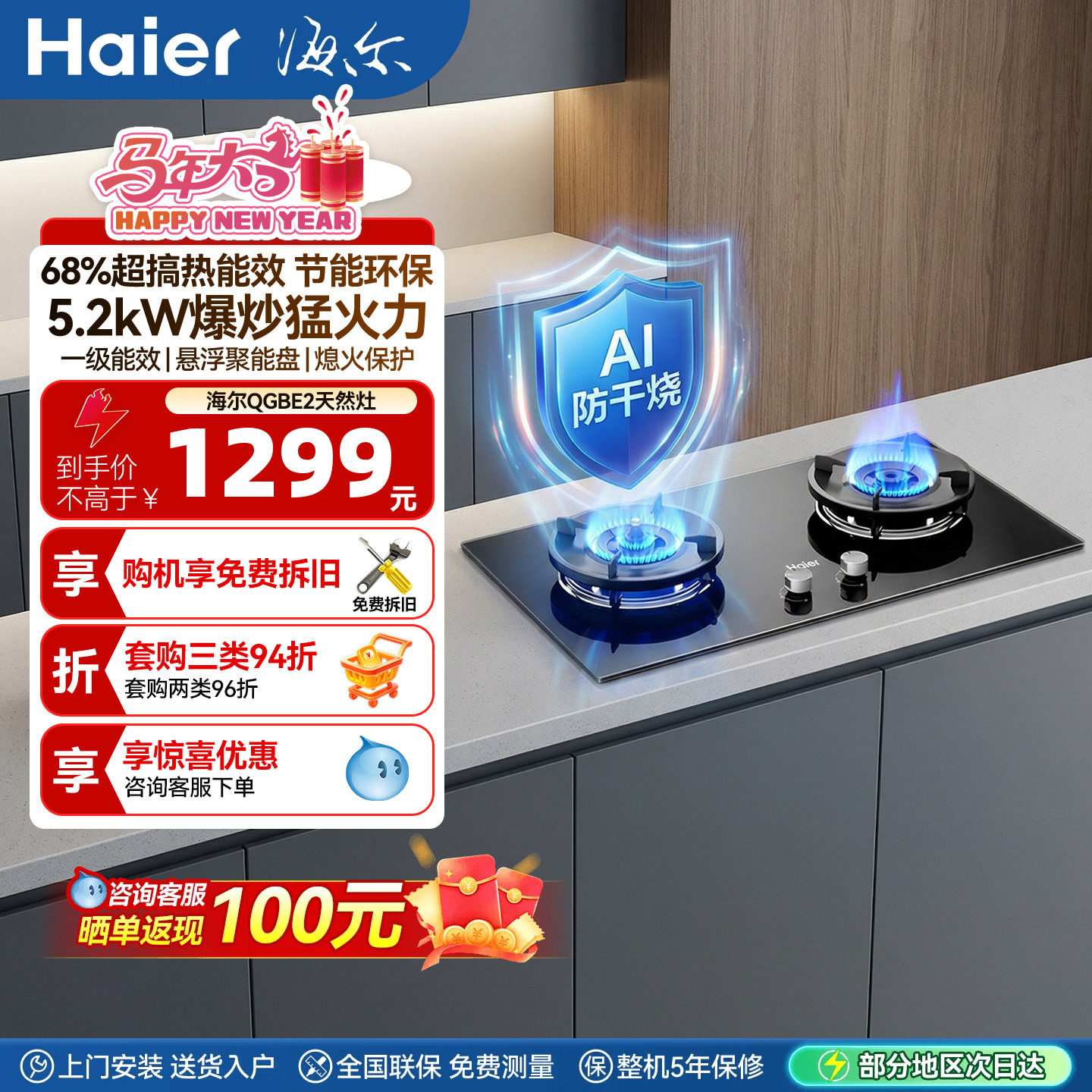 海尔QGBE2天然气燃气灶煤气灶双灶家用防干烧煤气炉灶台灶具炉灶