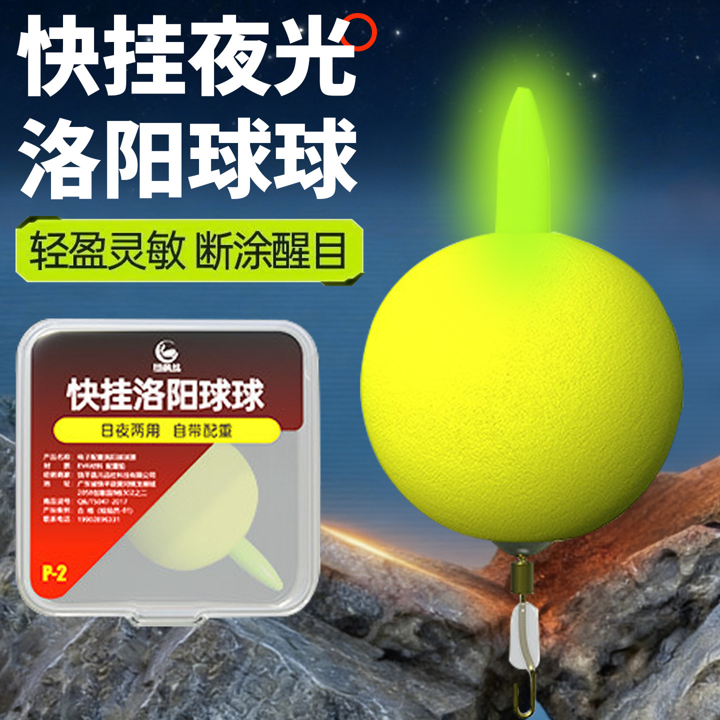 快挂夜光洛阳球球逗钓鲫鱼路滑免调电子漂夜光漂球球钓组浮球套装