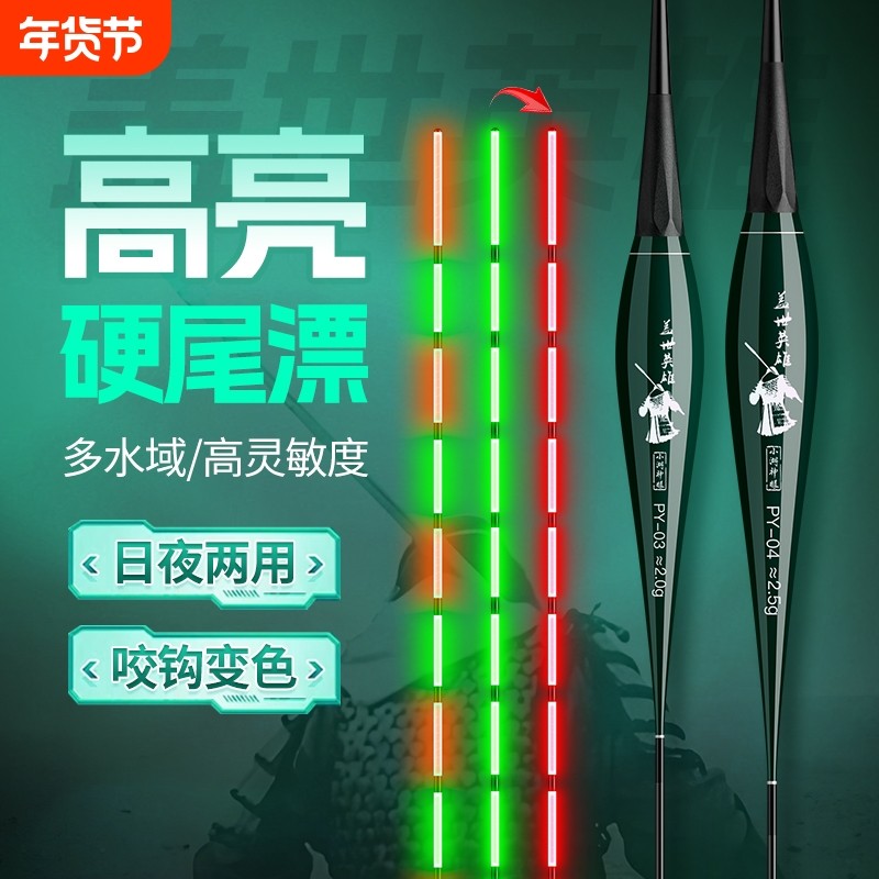 咬钩变色硬尾电子漂夜光漂日夜两用醒目高灵敏鲫鱼漂浮漂夜钓鱼漂