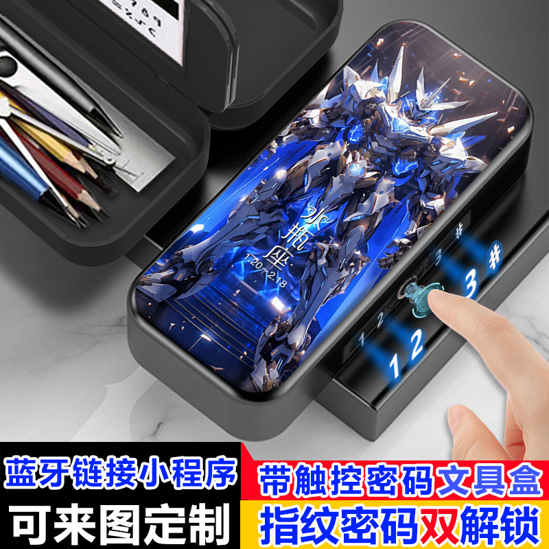 新款十二星座指纹触控密码文具盒小学生男生带密码炫酷铅笔盒定制