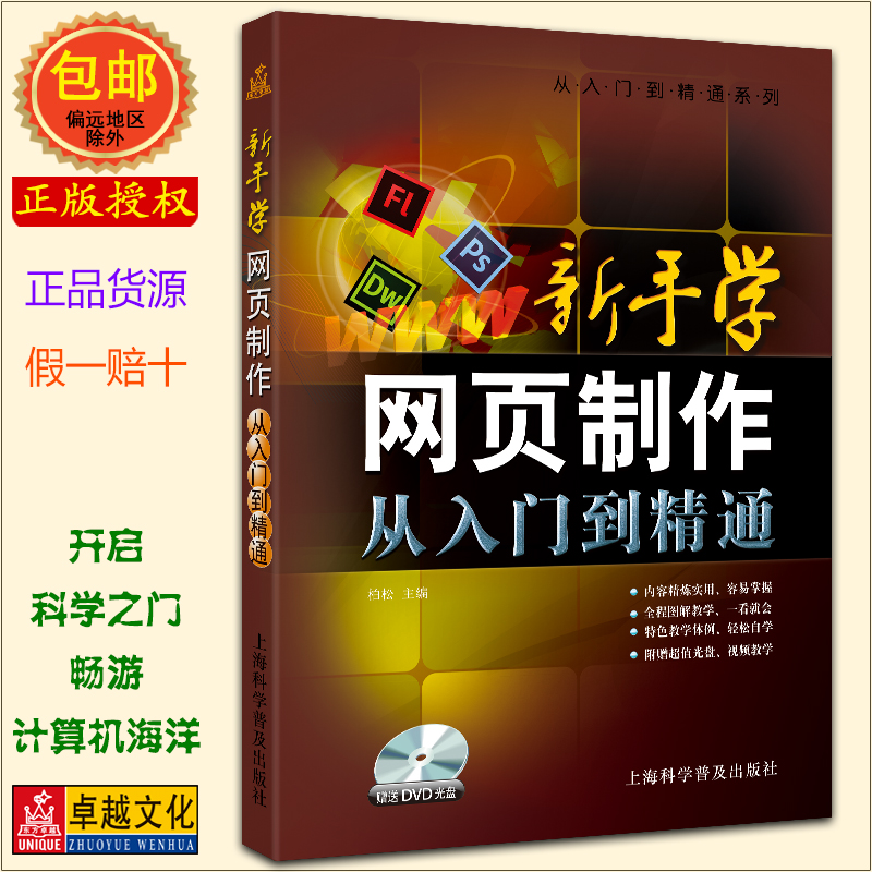 新手学网页制作从入门到精通 自学网站建设制作设计 Dreamweaver CS6 Flash PS 9787542759252上海科学普及出版社 正版包邮 附DVD