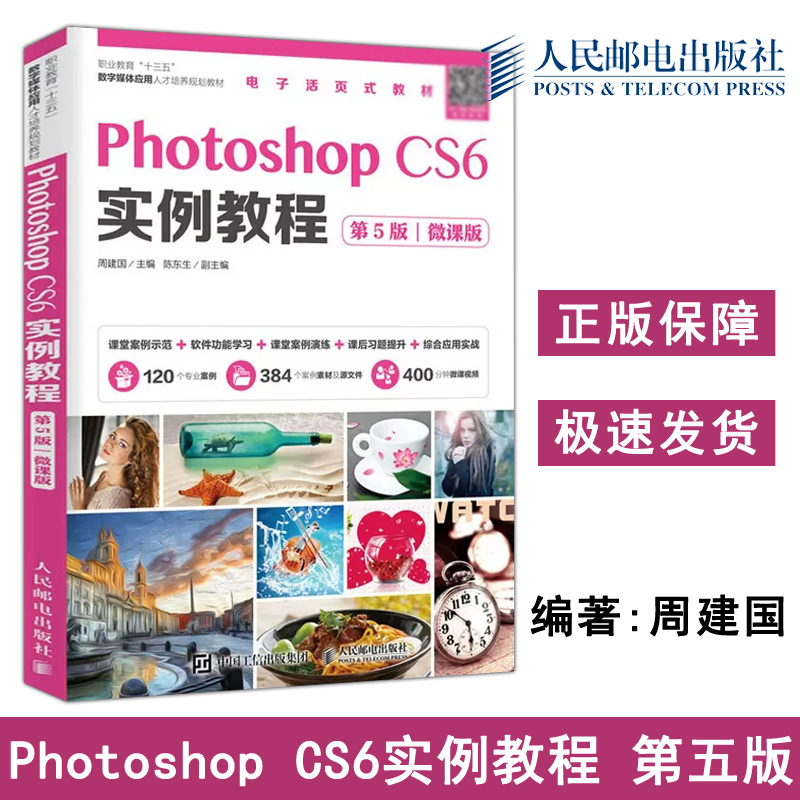 正版包邮 Photoshop CS6实例教程 第5版第五版 微课版 周建国 零基础自学ps软件教材 图形图像处理淘宝美工设计-人民邮电出版社