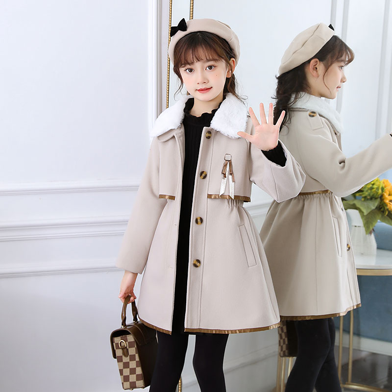 女童毛呢外套2025新款秋装儿童中长款呢大衣小女孩洋气春秋夹棉冬