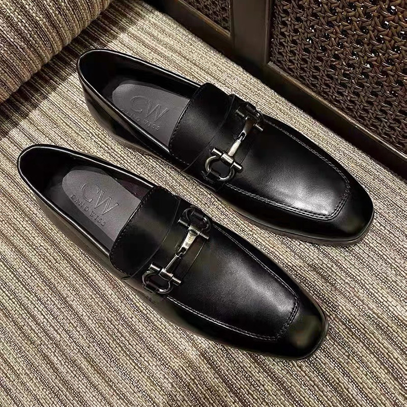CW2026新款春季乐福鞋男真皮鞋潮英伦一脚蹬商务懒人休闲亮马衔扣