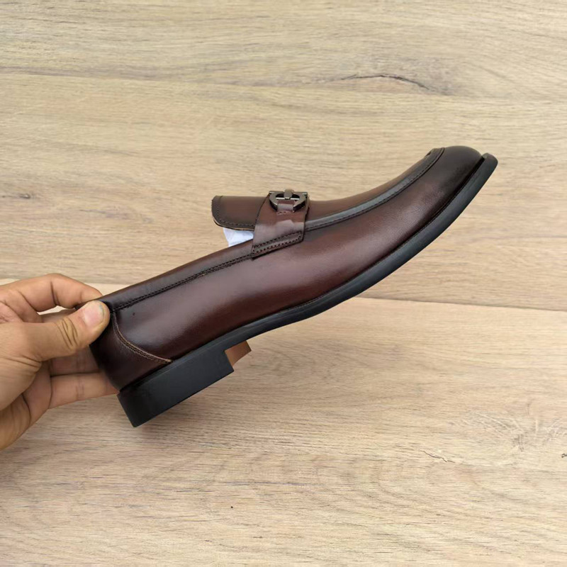 意大利手工皮鞋男真皮一脚蹬皮底外贸英伦百搭休闲商务乐福鞋马皮