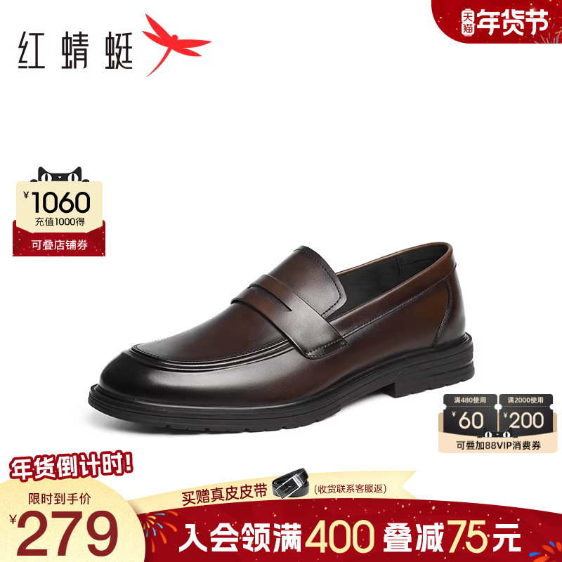红蜻蜓正装乐福鞋男2025秋季新款男鞋商务皮鞋男士真皮一脚蹬软底