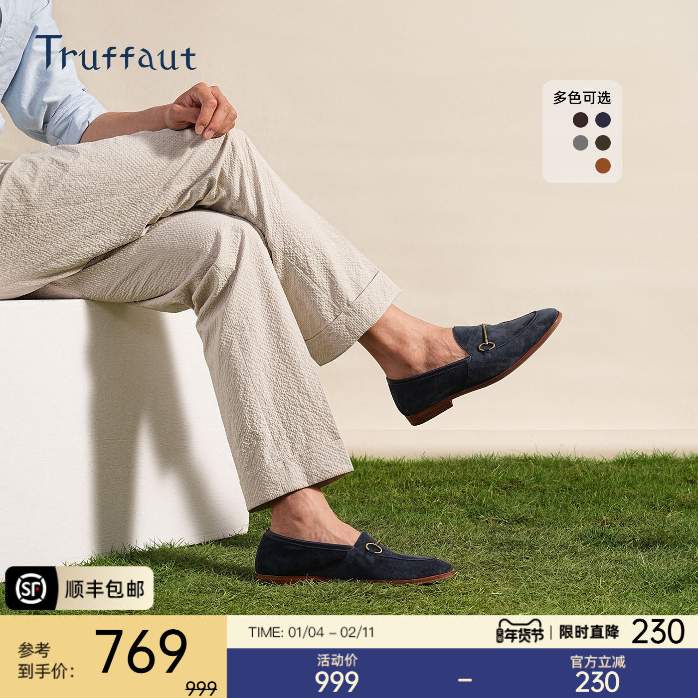 Truffaut反绒皮马衔扣乐福鞋男真皮休闲男鞋一脚蹬透气豆豆鞋冬季