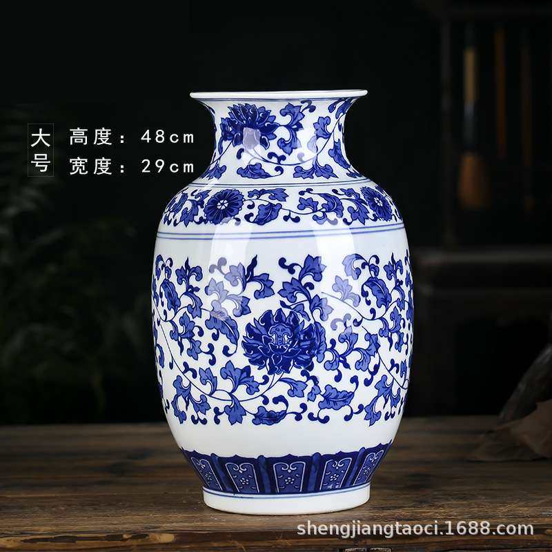 仿古缠枝莲青花瓷花瓶插花中式客厅装饰品博古架摆件品质好发货快