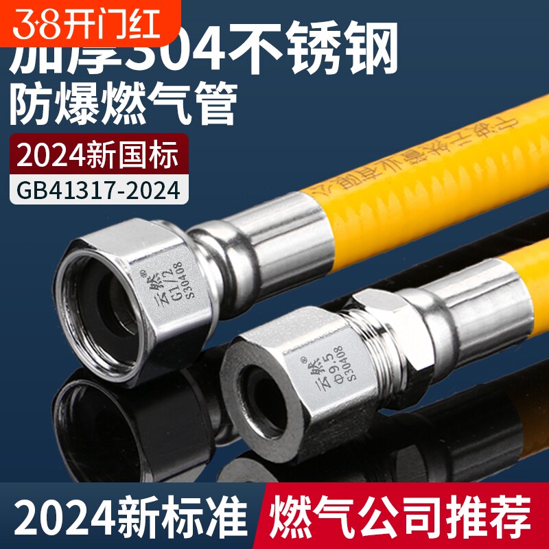 2025新国标燃气管天然气软管304不锈钢波纹管煤气灶防爆专用连接