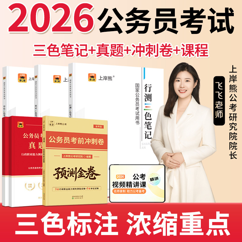 上岸熊行测申论三色笔记考公资料2026公务员考试教材省考国考历年真题试卷押题题库公考范文素材学霸时政热点言语刷题资料分析