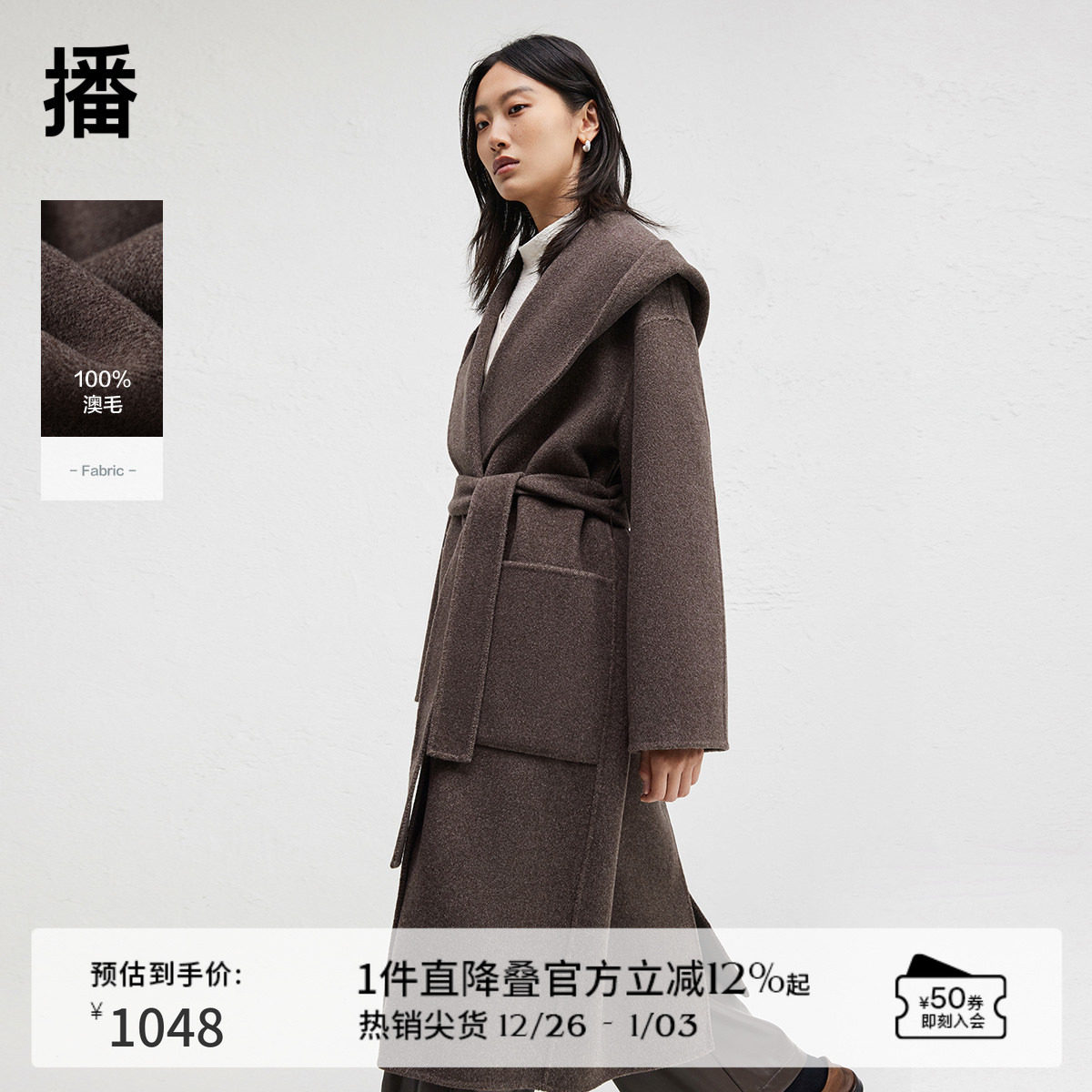【100%羊毛】播商场同款复古连帽领长款24冬毛呢外套女BDR4AD3725