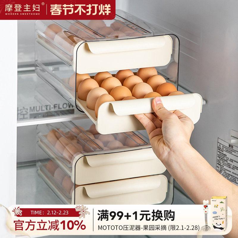 摩登主妇冰箱鸡蛋收纳盒抽屉式家用厨房保鲜放鸡蛋盒置物架整理盒