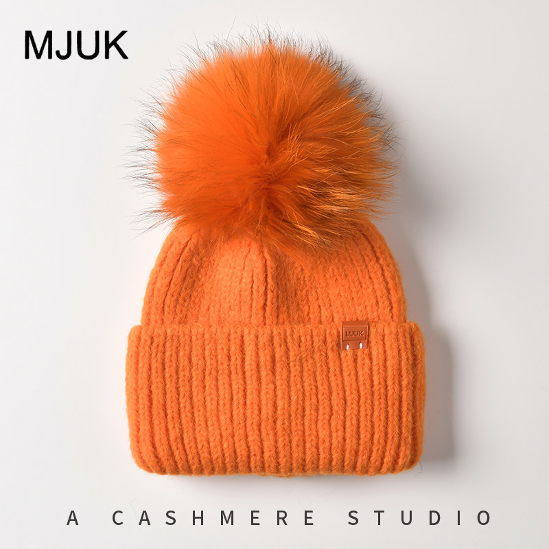 MJUK热巴同款狐狸毛球帽子女冰岛羊毛帽花儿与少年加厚保暖冷帽潮