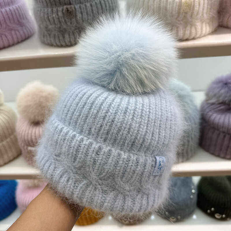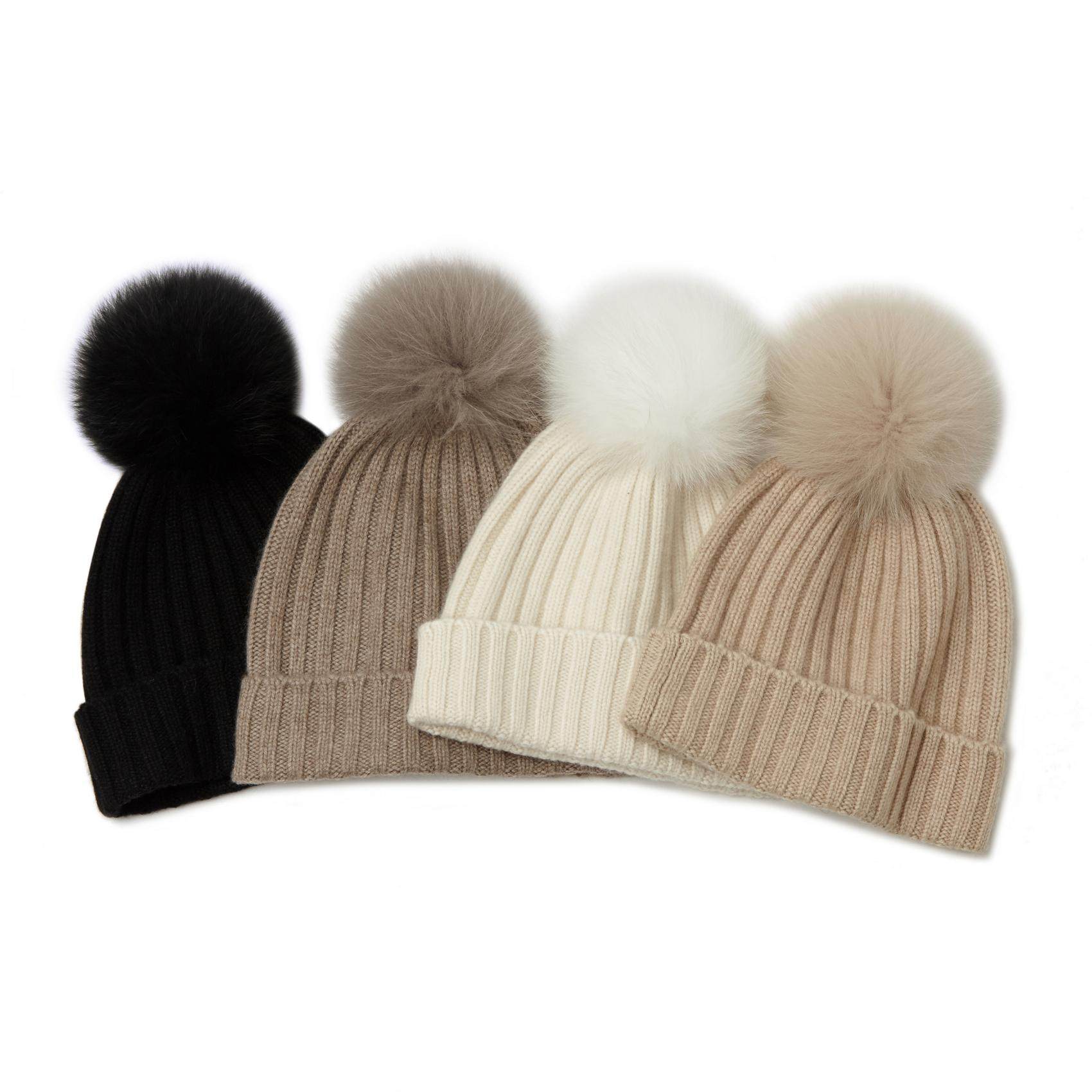 高端有品质100%山羊绒女秋冬狐狸毛球针织帽加厚款百搭保暖毛线帽