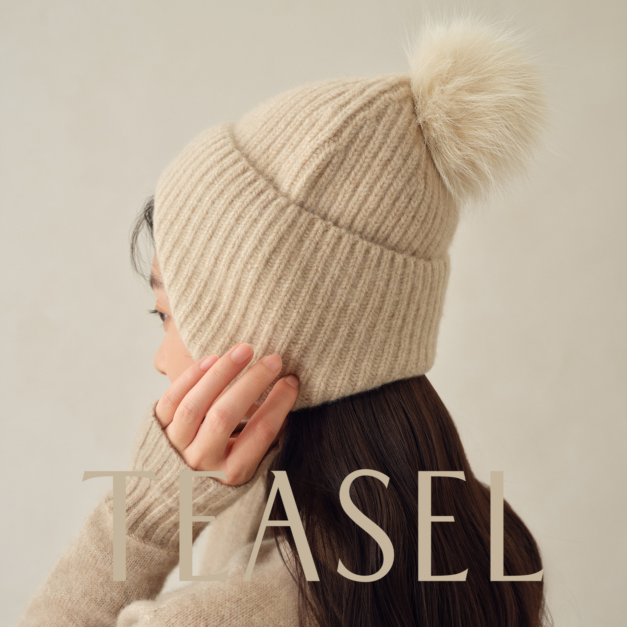 TEASEL「INFINITY ALXA」山羊绒可爱狐狸毛球保暖护耳加厚帽子