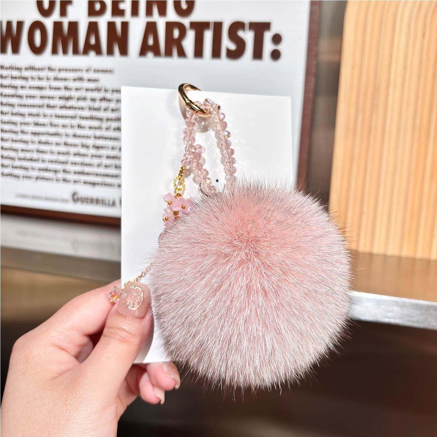 艺彩轻奢风小提溜手机挂件高级感汽车钥匙扣挂件狐狸毛毛球手机链