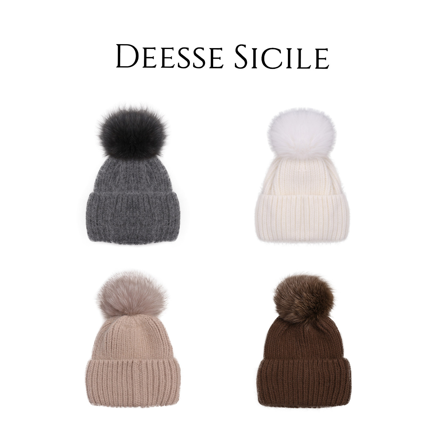 AiurtRuutti意式纯羊绒运动休闲高奢 狐狸毛球冷帽针织便帽皮草冬