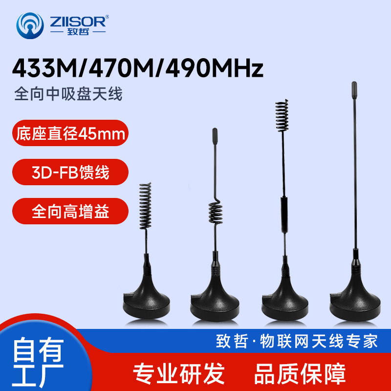 致哲433m/470/490MHz无线模块数传电台LoRa高增益外置小吸盘天线