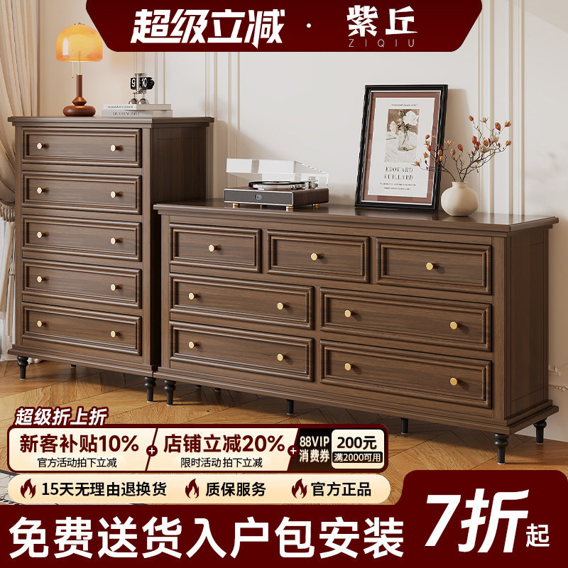 美式实木五斗七八九斗柜卧室靠墙轻奢抽屉柜子床尾收纳柜客厅复古