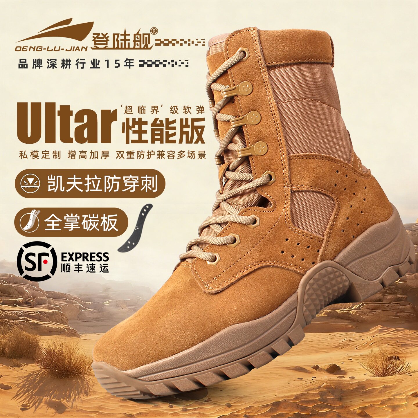 正品魔改棕色作战靴男超轻碳板高帮作战训靴鞋战术作训战斗靴男靴