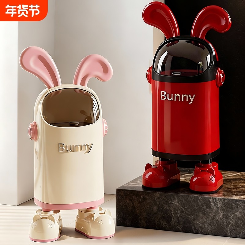 客厅垃圾桶2025新款卡通高颜值家用创意大容量垃圾筒卧室带盖纸篓