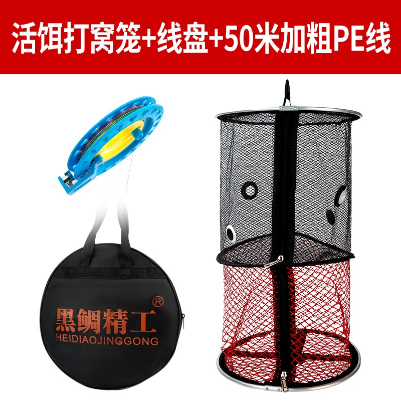 黑鲷筏钓打窝器泥鳅打窝神器双层打窝网活饵糠饼定点饵料网配线轮