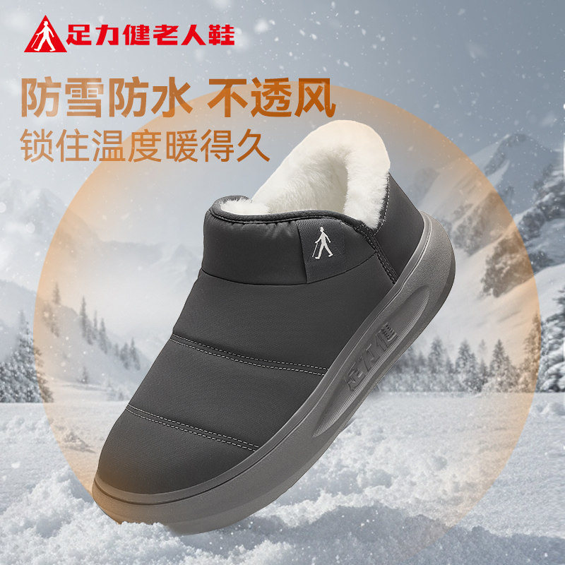 足力健老人鞋官方旗舰店正品中年爸爸冬季加绒保暖健步鞋棉鞋男款