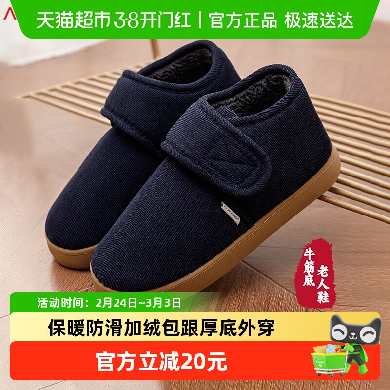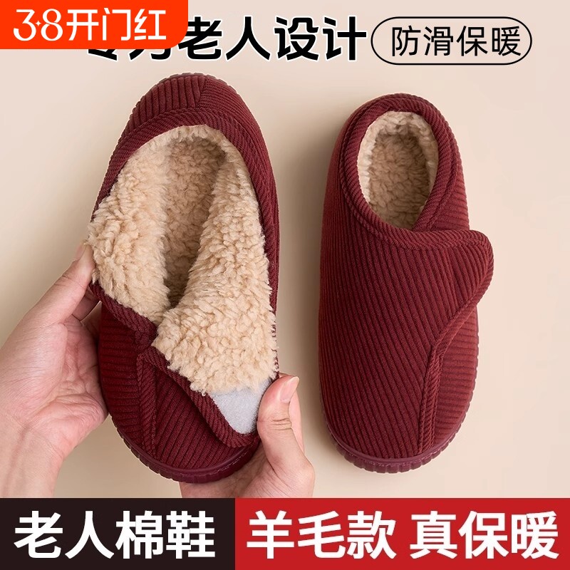 秋冬棉鞋中年老人保暖居防滑男女加绒妈妈棉拖鞋牛筋底老年人居家