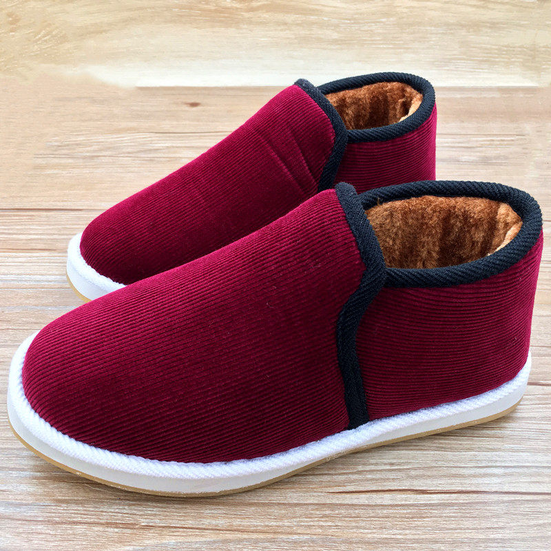 老北京手工棉鞋加绒加厚居家舒适女士男士中年套脚平底圆头保暖鞋