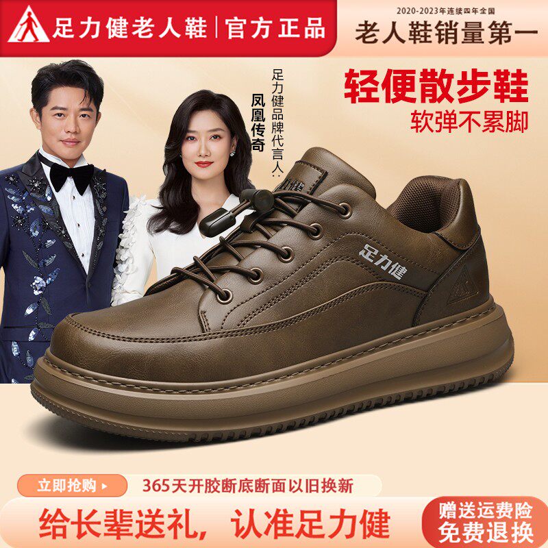 足力健老人鞋官方旗舰店正品男鞋春秋季皮面运动防滑中年爸爸皮鞋