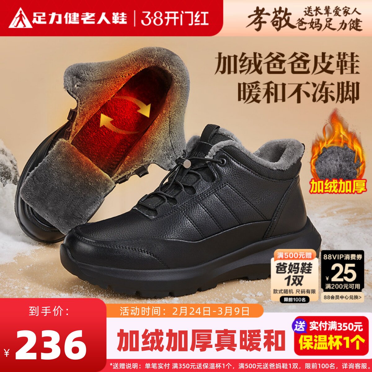 足力健老人鞋男正品冬季加绒皮鞋休闲保暖棉鞋防滑中年舒适爸爸鞋