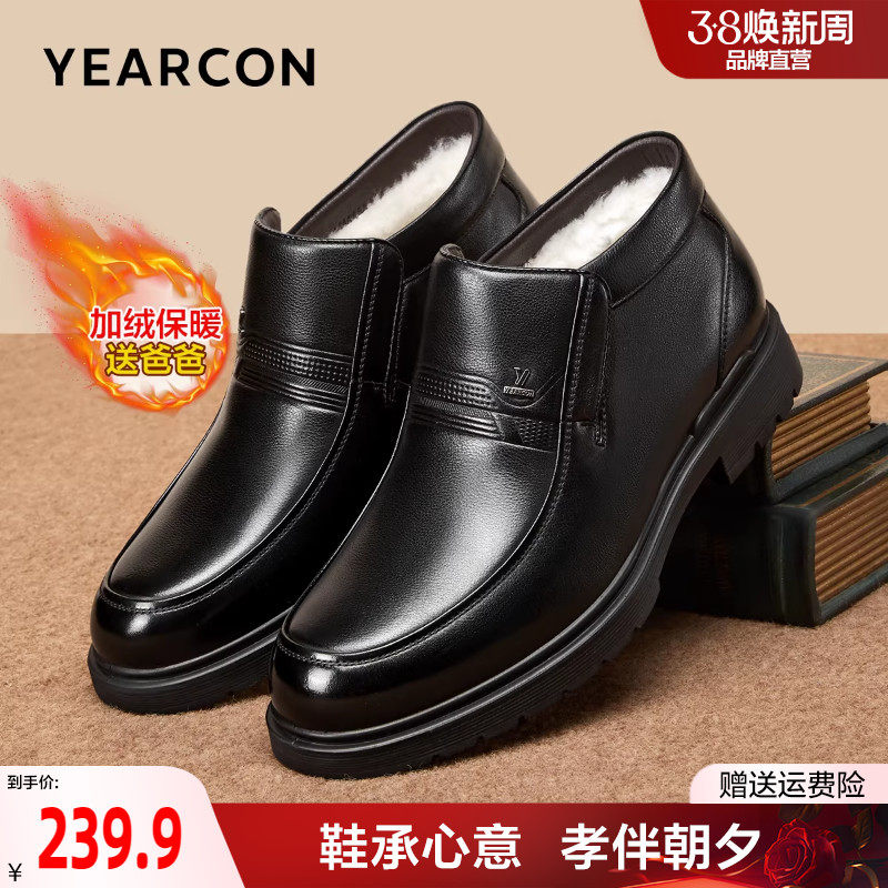 意尔康皮鞋男士真皮正品冬季中年休闲加绒保暖棉鞋防滑软底爸爸鞋