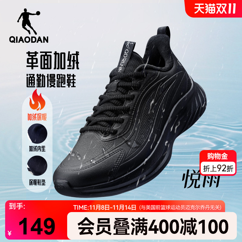 乔丹悦雨冬季加绒运动鞋皮面保暖防水男鞋学生跑鞋减震软底跑步鞋